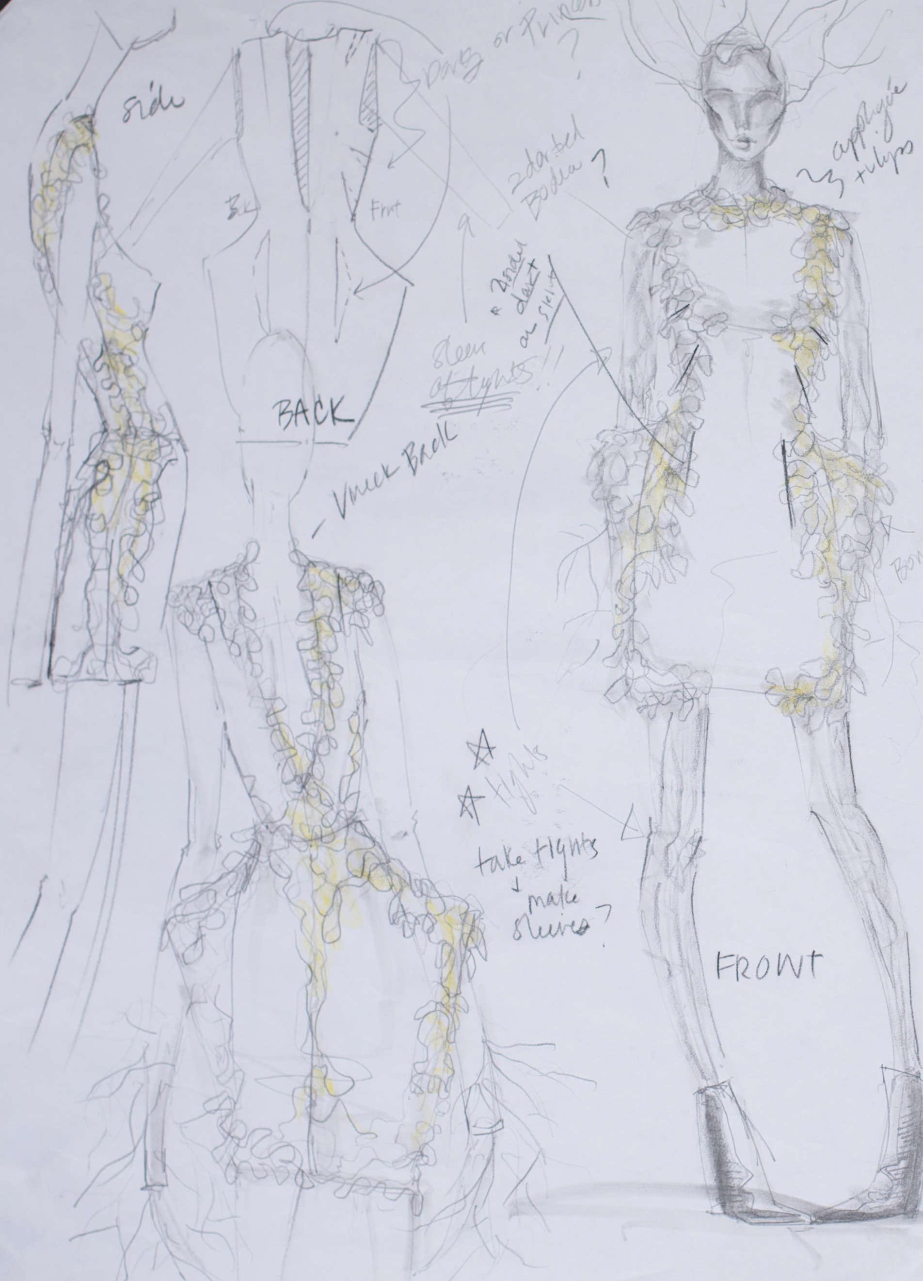 The beginnings of my croquis research. I thought about having style lines that replicate the shape of ink blot tests.